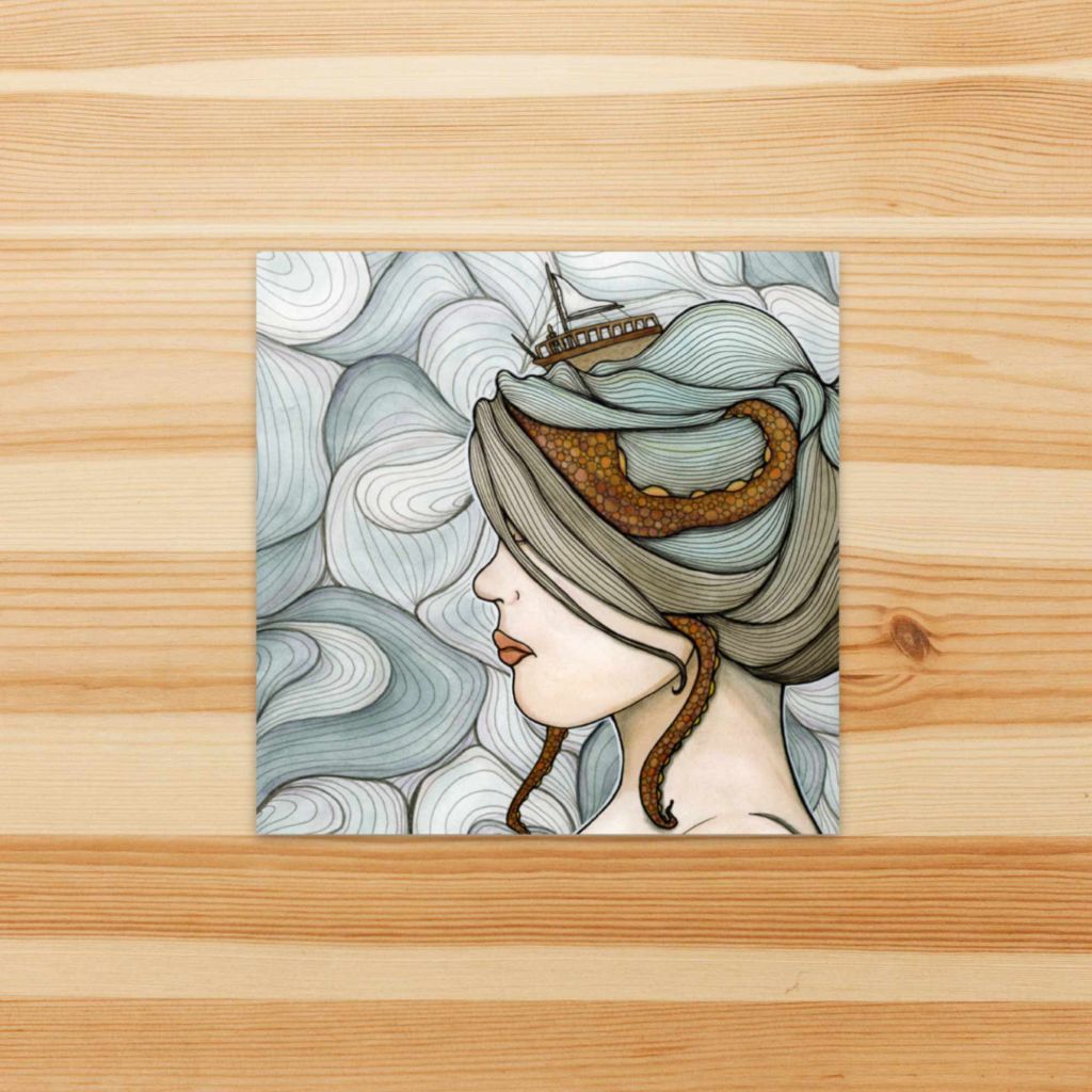 This sticker features my "Adrift" illustration. Sticker is 3" at it's tallest point.