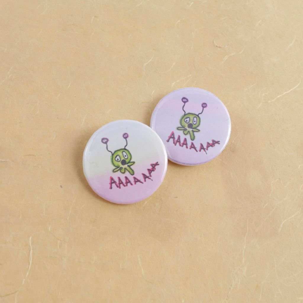 "AAAAAAA" anxiety buddy button. Tell us how you really feel with one of these 1 1/4" buttons. Each hand colored button is one of a kind. You will receive 1 button.