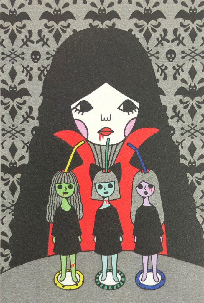 This postcard features a striking colorful and whimsical world with artwork made with colored sand and then scanned with high quality. 4"x6"