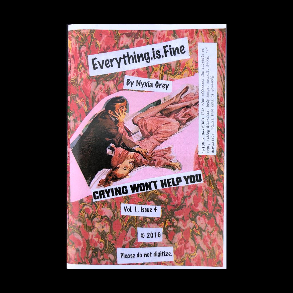 This is the fourth issue of EIF. This zine is very subject matter heavy and deals with suicide, grief, sexual assault, and depression. This zine can be very triggering. 5 1/2" x 8 1/2" by Nyxia Grey
