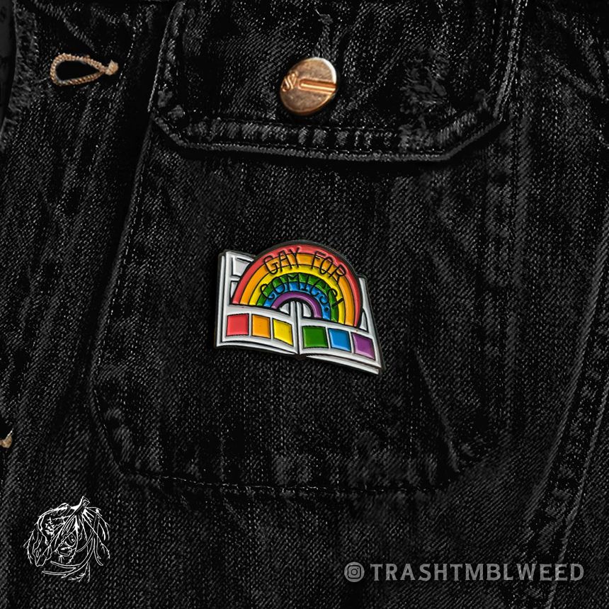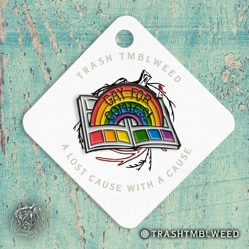 "Gay for Comics!" 1" x 1 1/4" Soft enamel pin from comic artist & illustrator Kibble Lowell (@comic_kibble)