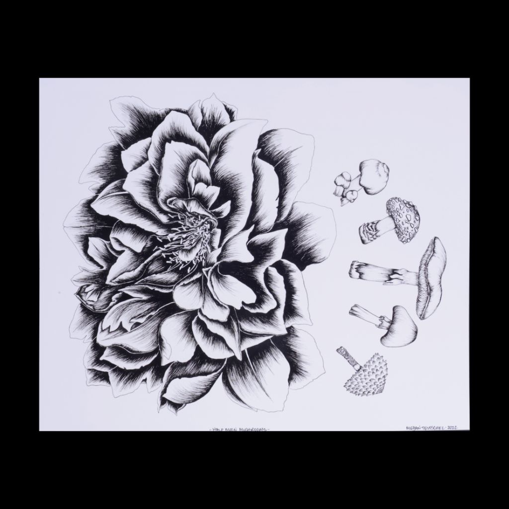 "Half Moon Mushroom" botanical print of an original ink by Megan Teutschel. Printed on heavy white paper - 11" x 14"