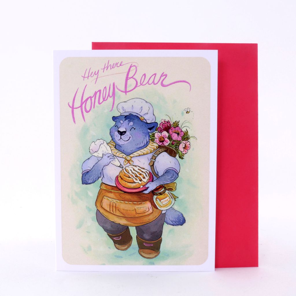Greeting card featuring an bear with cinnamon roll. Perfect to share with your sweetie!