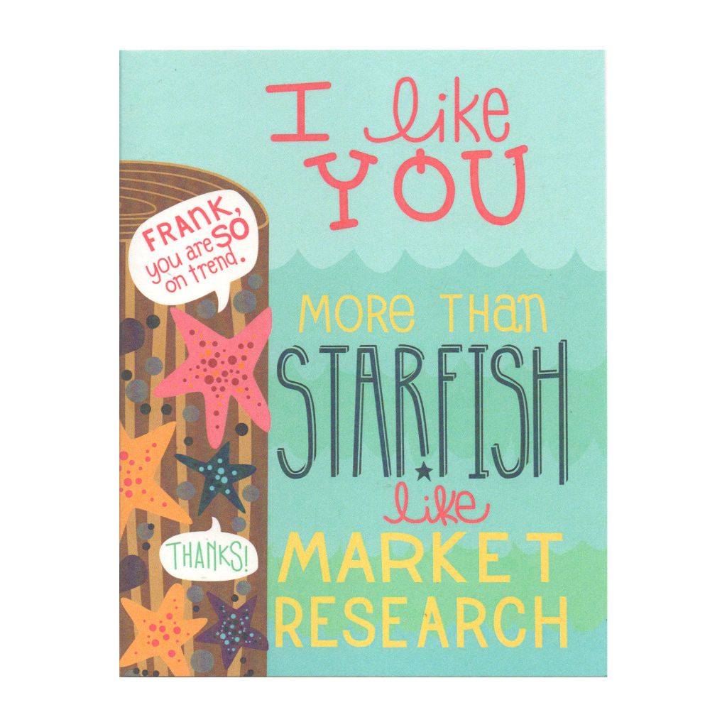 I Like You more than Starfish like Market Research - 5 1/2" x 4 1/4" greeting card - blank inside