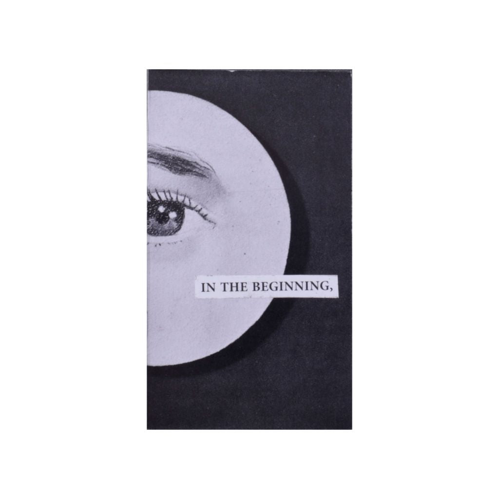 IN THE BEGINNING - Upcycled 3 1/2" x 2" collage magnet made with vintage book/magazine pages.
