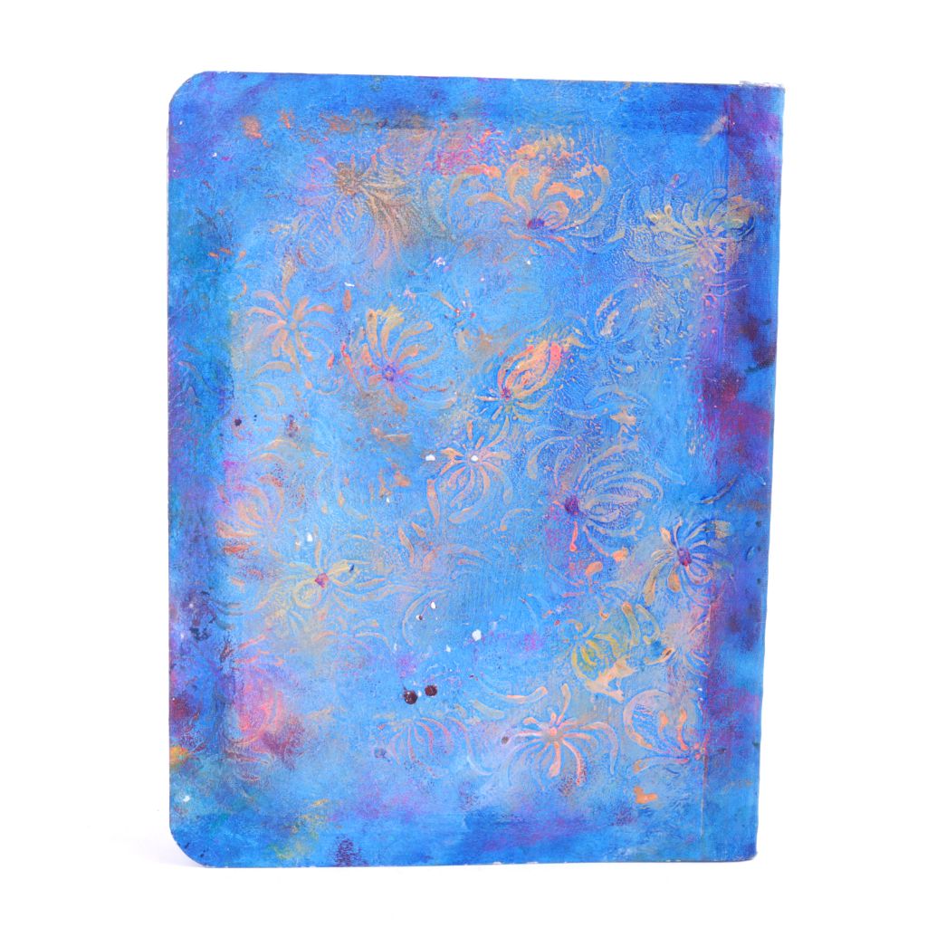 "Merry Maids of Spring" Original, one of a kind, mixed media writers journal with impasto textured covers. 9 3/4" x 7 1/2" with 2 large and 1 small pocket, a bookmark and lined paper.
