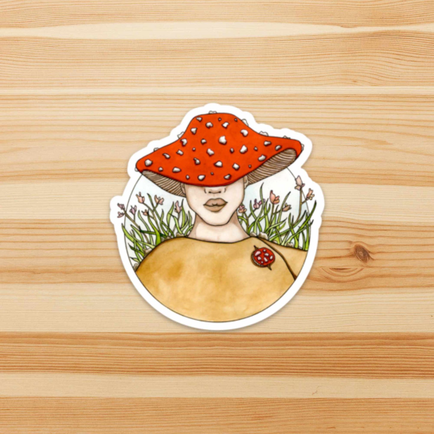This sticker features my "Mushroom Cap" illustration. Sticker is 3" at the tallest point.