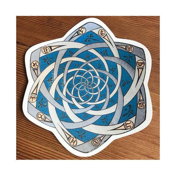 "Planetary Spiral" 4" sticker. High quality, weatherproof vinyl sticker reproduction of original art. Great for vehicle, water bottle, computer, altar, and more!