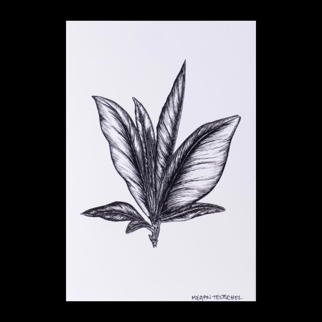 "Seven Leaves" botanical print of an original ink by Megan Teutschel. Printed on heavy white paper - 6" x 9"