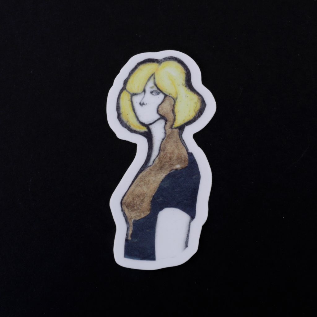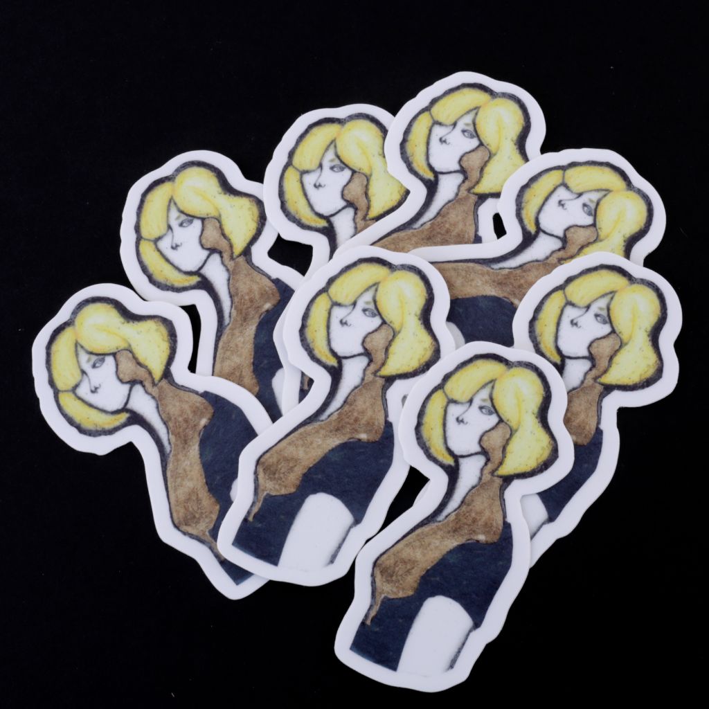 "She looked at her surroundings & found nothing worth her words" - 3" tall vinyl, waterproof, die cut sticker. From original art by Claire Stordahl.