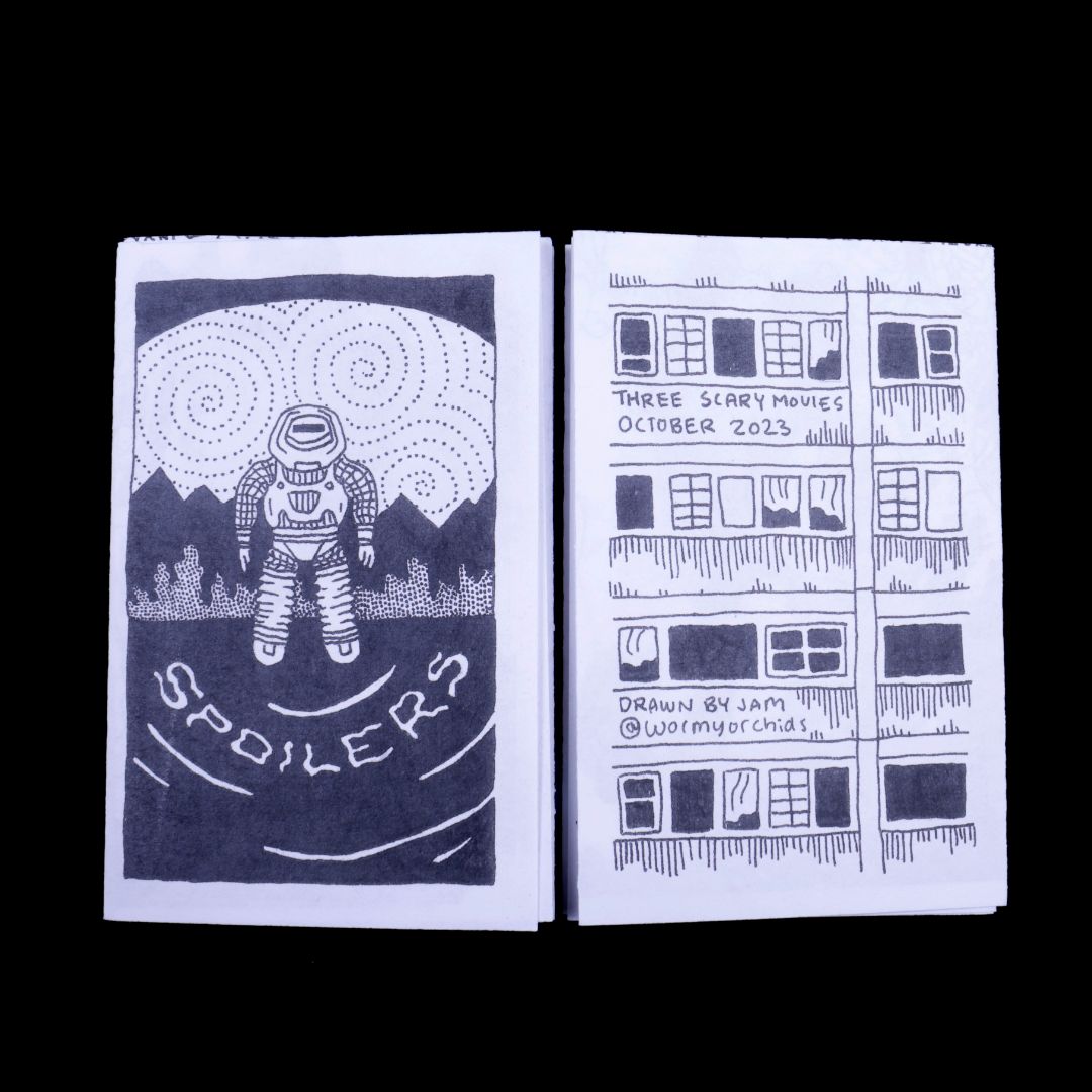 This minizine reviews three horror movies I watched in October of 2023- Evil Dead Rise (2023), Sunshine (2007), and Candyman (1992). It’s printed on 8.5 x 11 inch copy paper, with a choice of orange or white paper- the foldout is a poster featuring imagery from Candyman. As the title implies, this review zine contains many spoilers!!