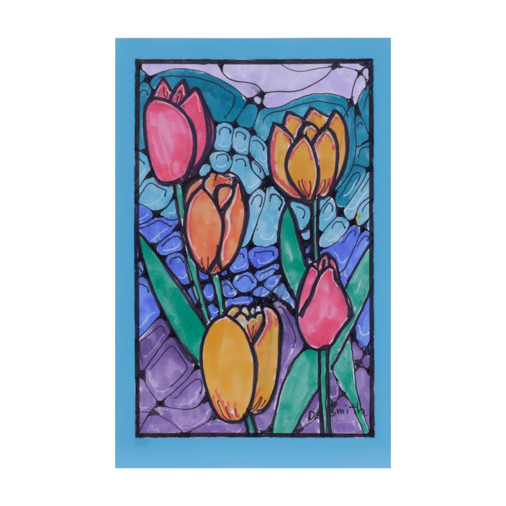 "Spring Flowers 03" - original hand drawn card with neurographic background. 8 1/2" x 5 1/2", blank inside and includes envelope. Original, one of kind framable art.