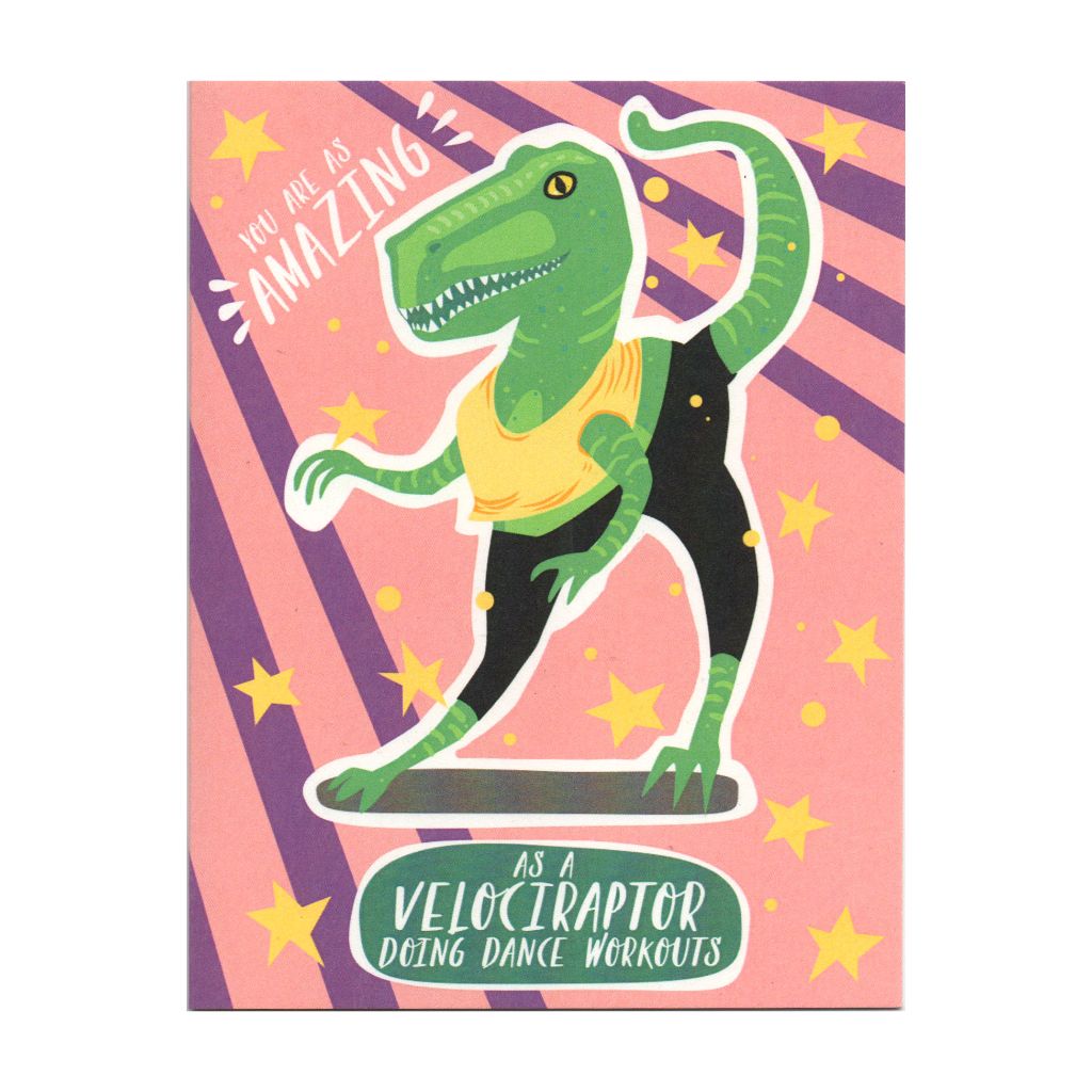 You are as Amazing as a Velociraptor doing dance workouts - 5 1/2" x 4 1/4" greeting card - blank inside
