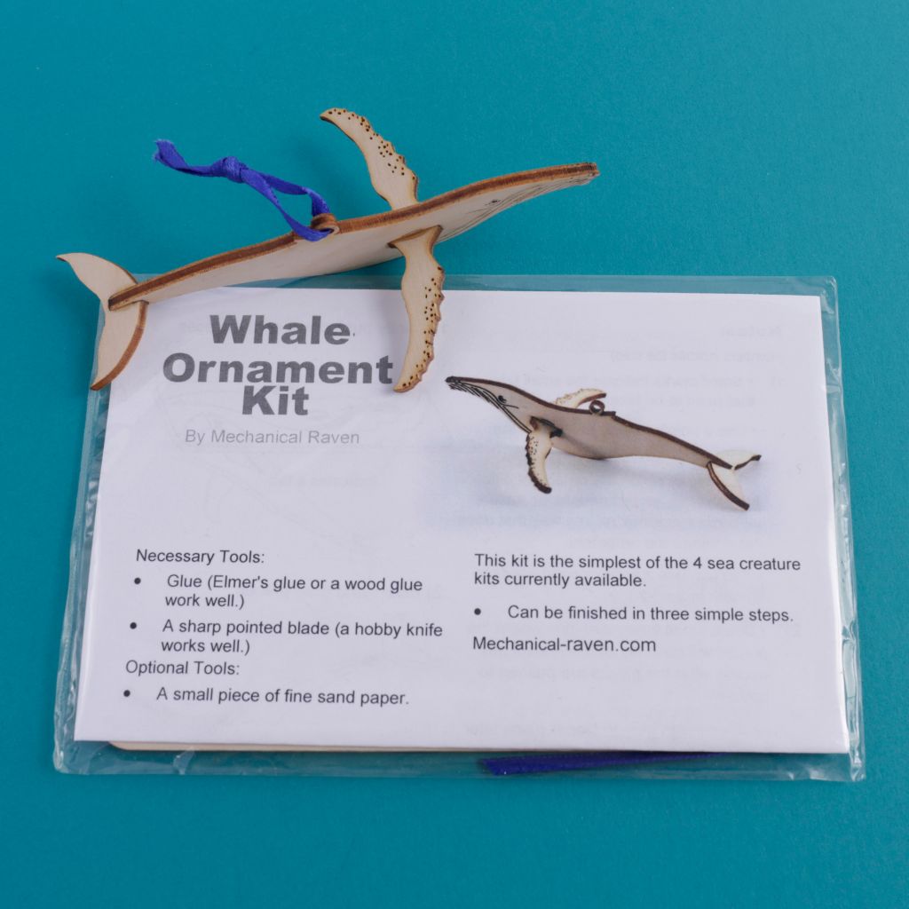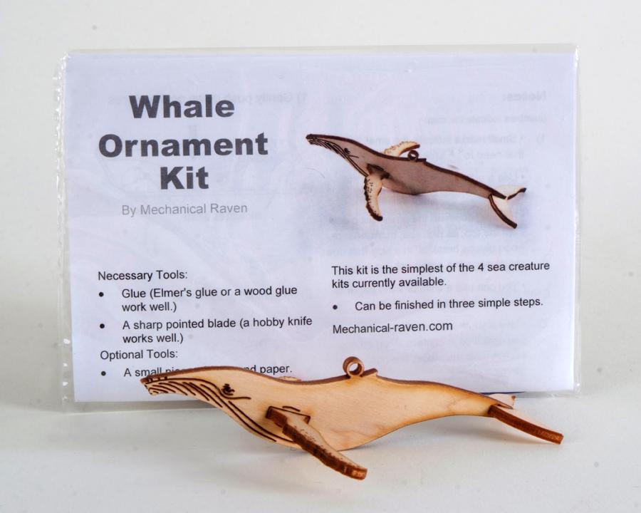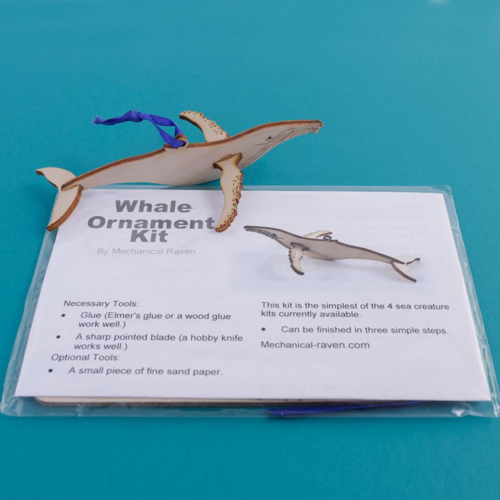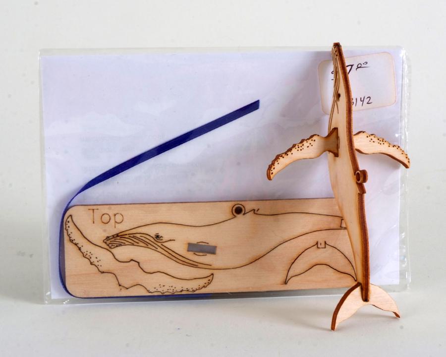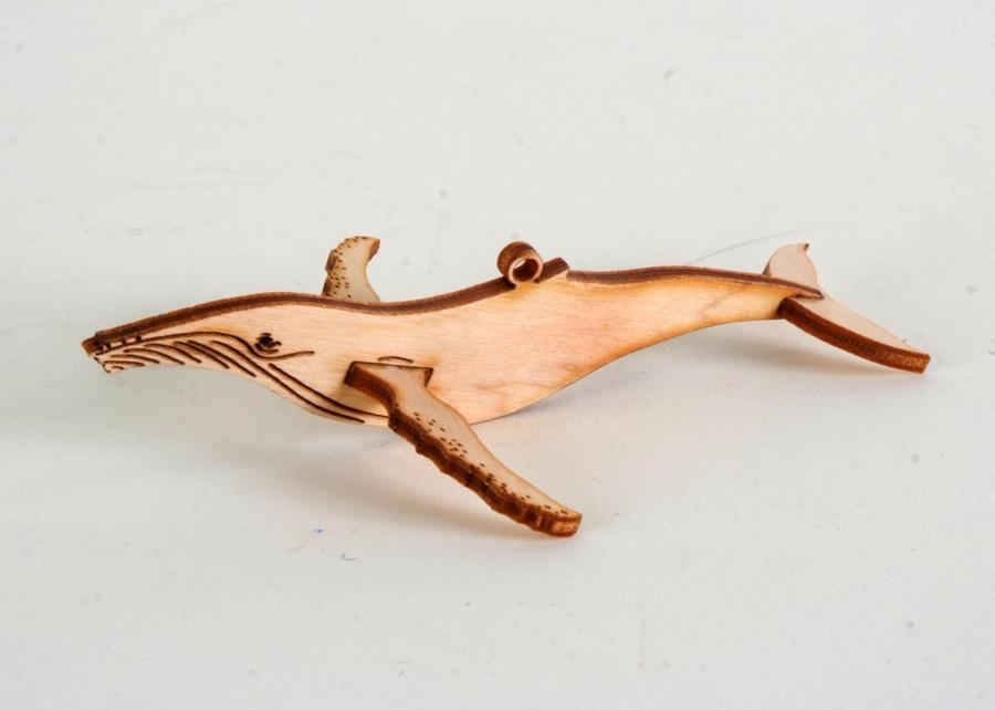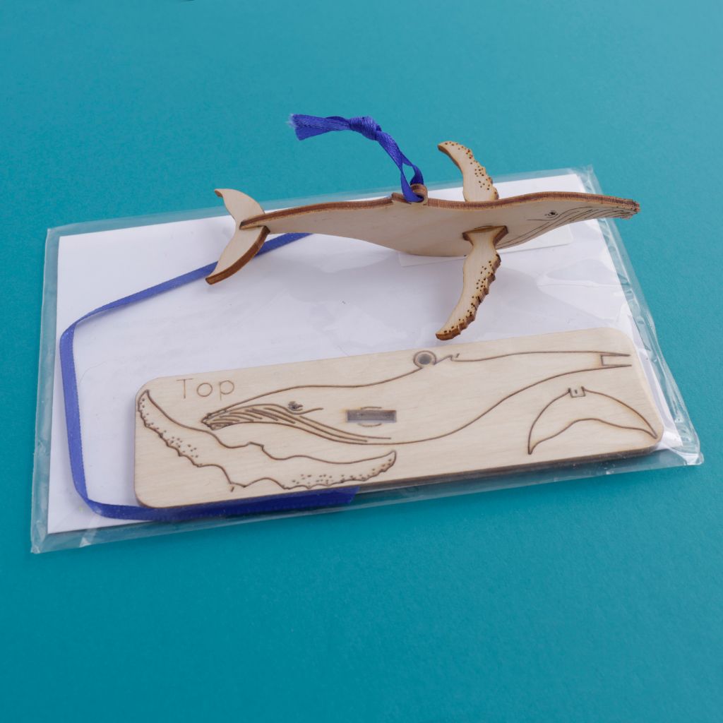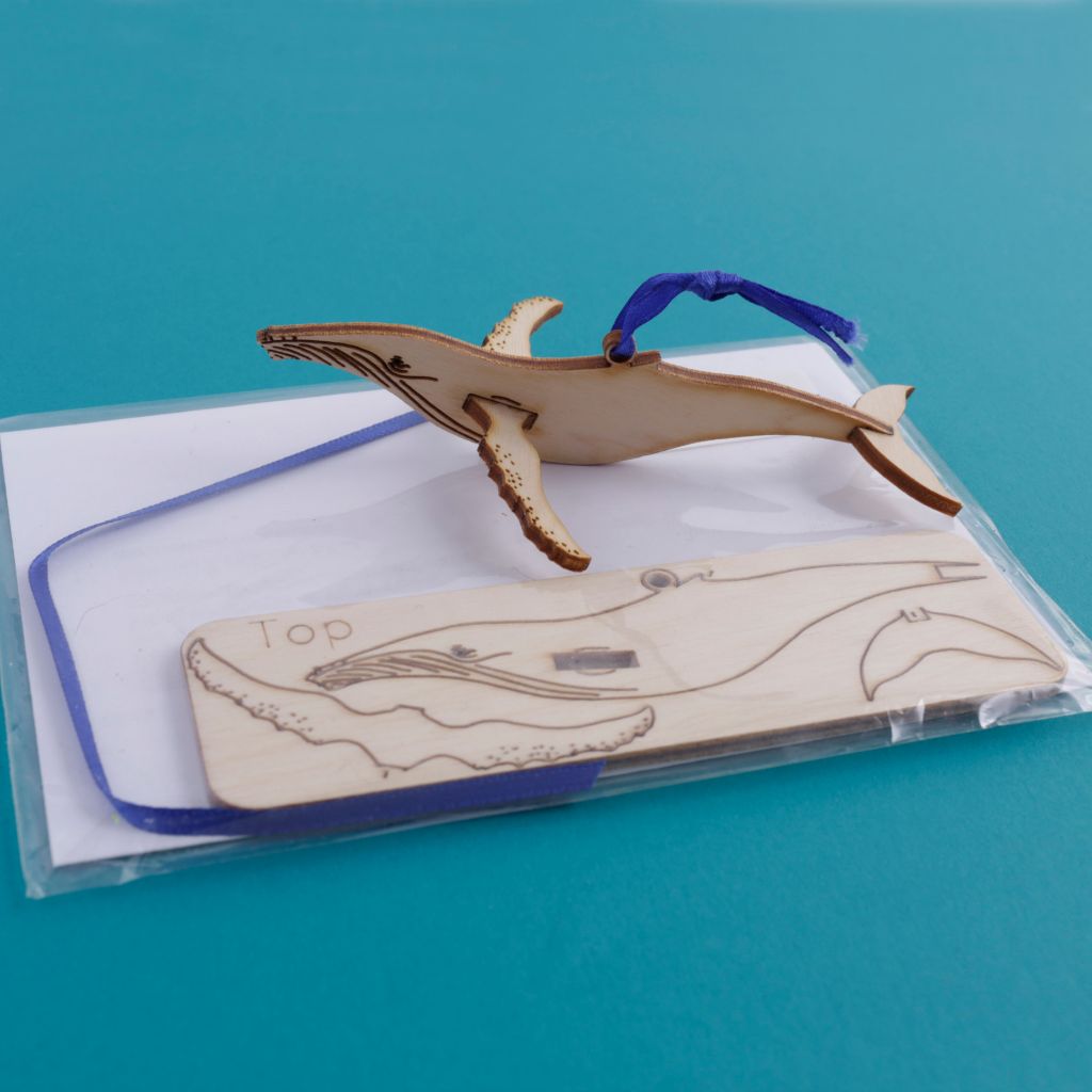 Create your own laser cut wooden whale ornament. Ages 6+.