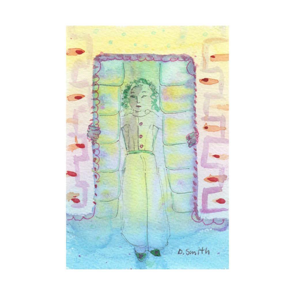 "What Frames Me?"" original watercolor on heavyweight watercolor postcard stock. 4" x 6"