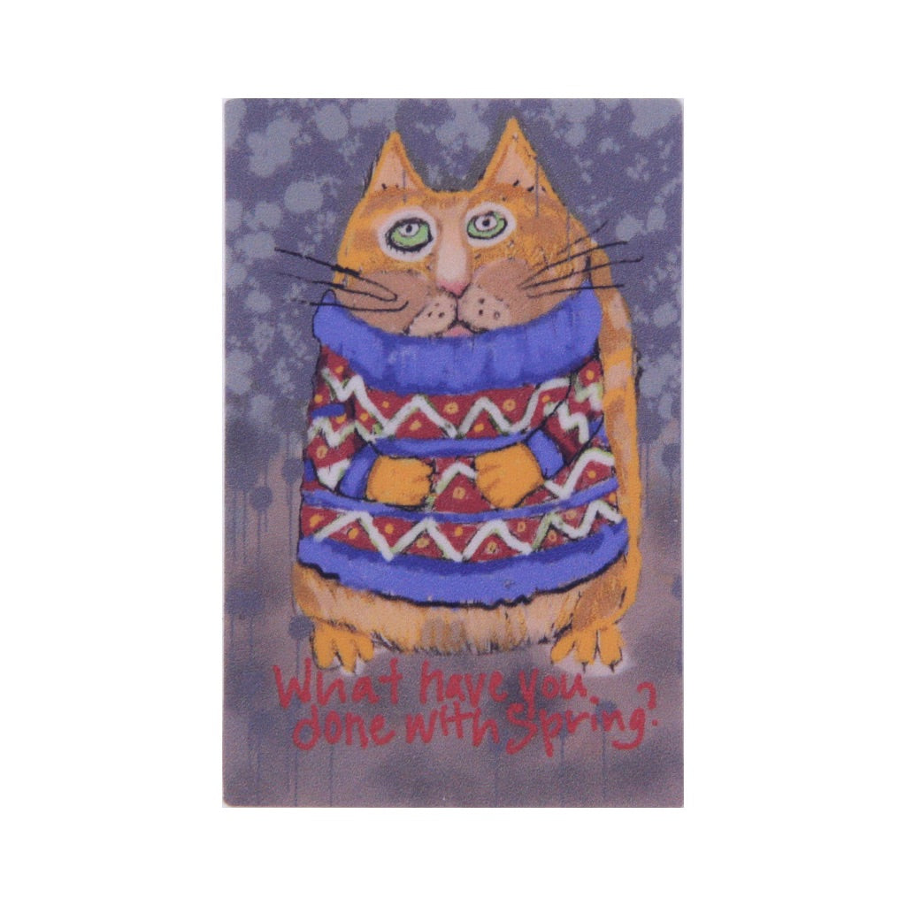 What have you done with spring? - mini sticker of cat in sweater - 2" x 1 1/4"